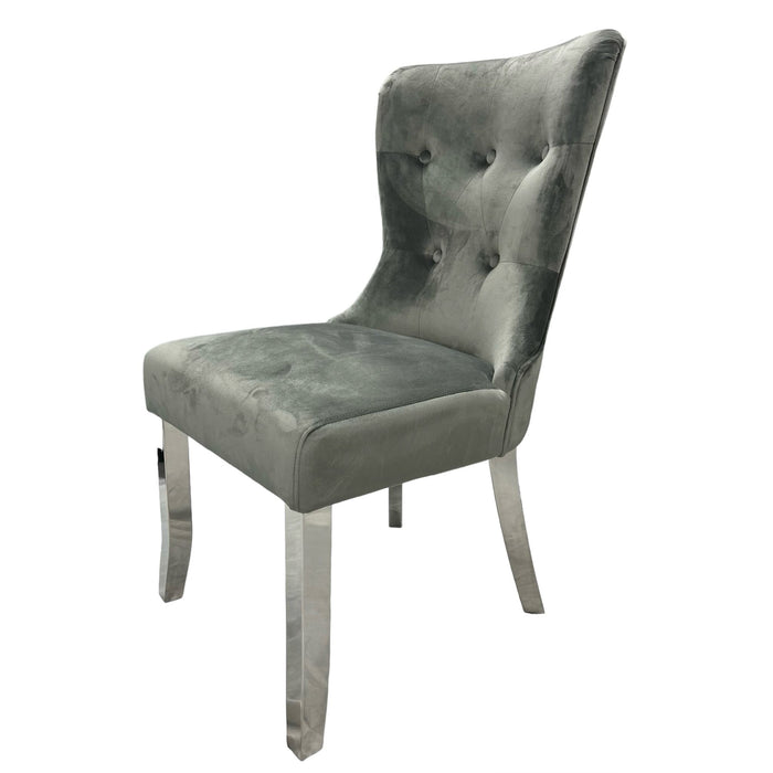 Elevate your interior with the Bentley Dark Grey Chair (Chrome Legs), a modern dining chair crafted for both style and comfort. Made with luxurious upholstery in a chic grey finish, this chair blends durability with sophistication. The durable legs ensure stability while enhancing its contemporary look, making it perfect as stylish office seating or as a comfortable accent chair in your living room. Whether used for family meals, work, or relaxation, this piece of luxury home furniture delivers the ultimate balance of elegance and everyday comfort. Add a touch of modern charm to your home with this contemporary chair design.